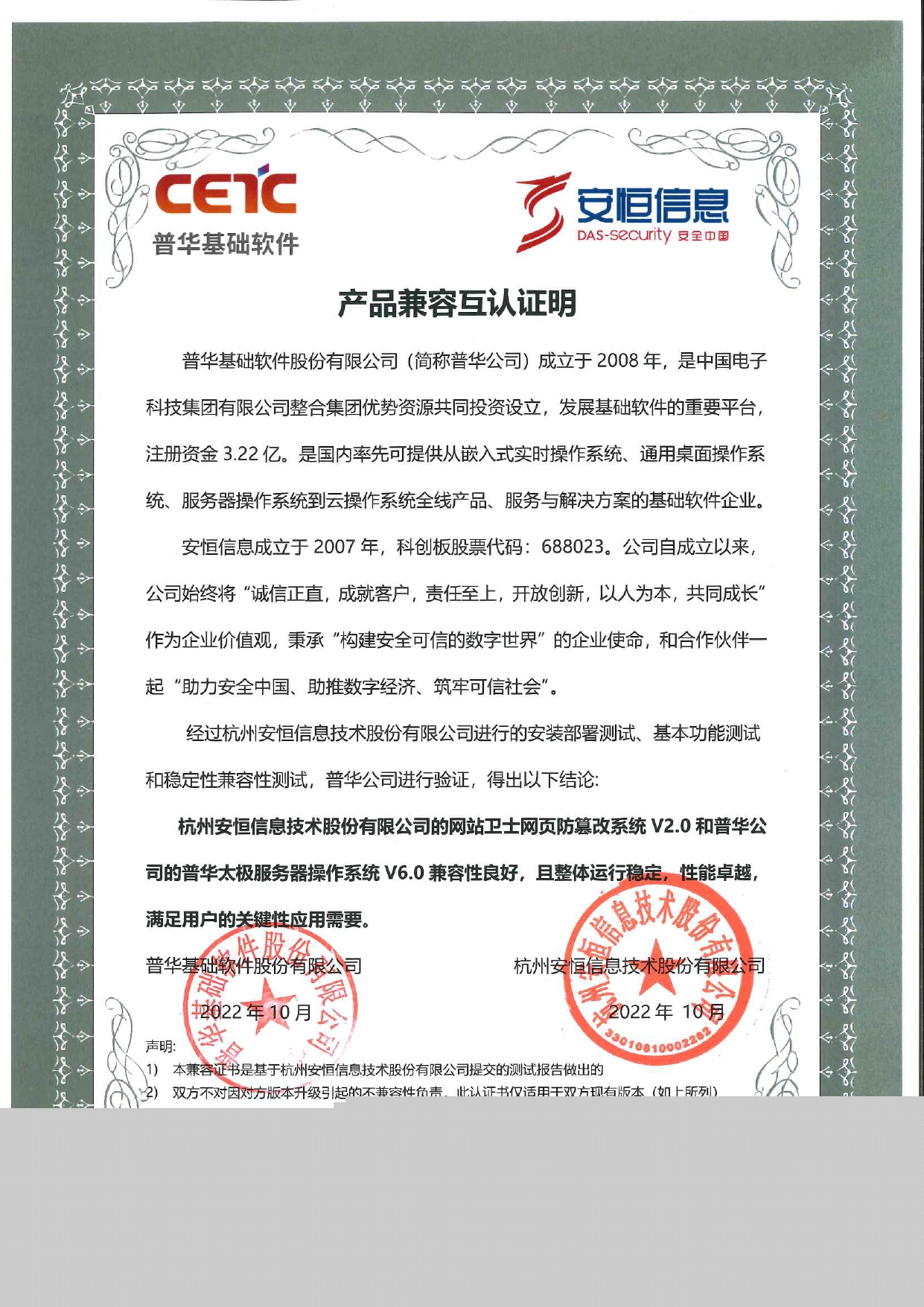 2022年3月,安恒信息獲得國(guó)家工業(yè)信息安全發(fā)展研究中心首批“信創(chuàng)政務(wù)產(chǎn)品安全漏洞專業(yè)庫(kù)技術(shù)支撐單位”證書(shū)。