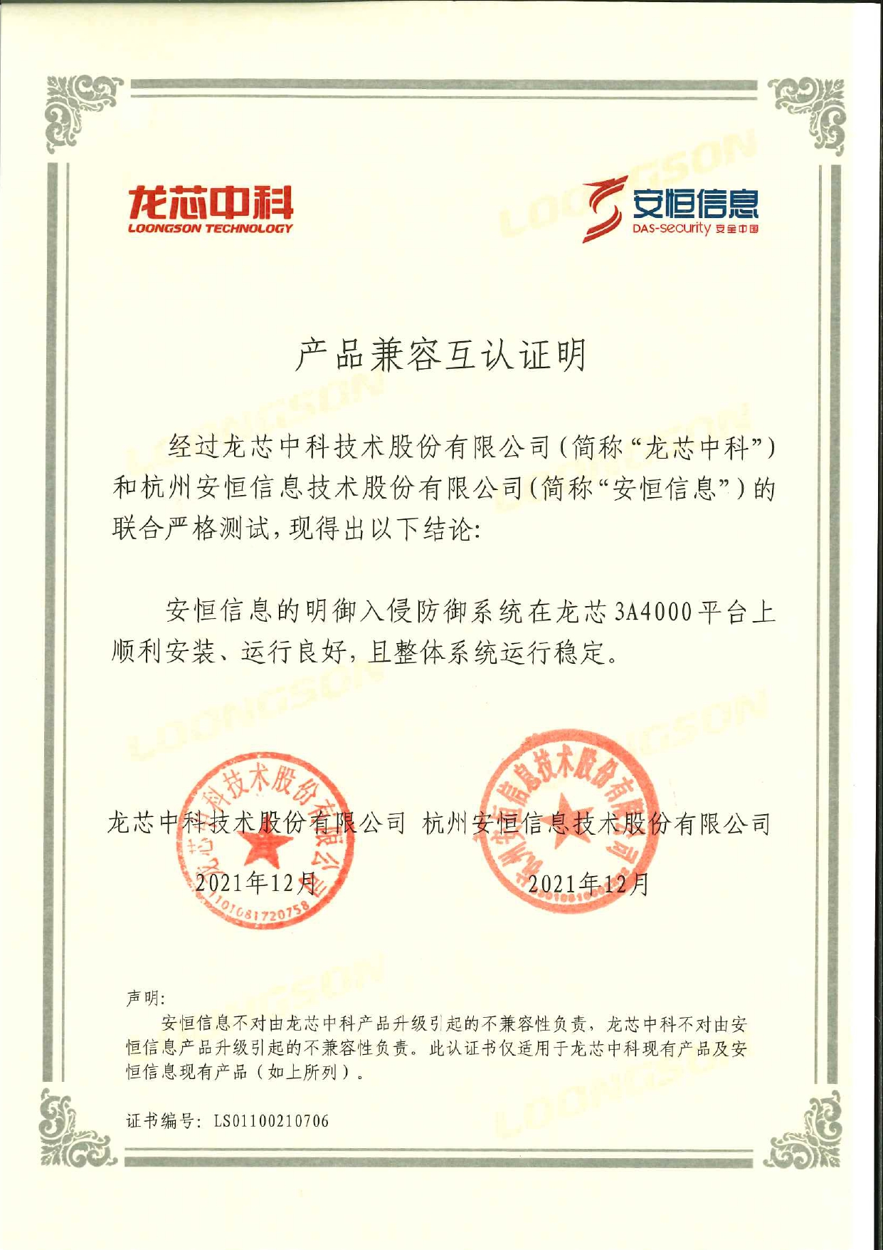 - 安恒信息聯(lián)合龍芯發(fā)布基于新一代3A4000 CPU芯片的網(wǎng)安產(chǎn)品